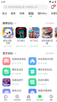 2、社区.关注聚合重要动态,游戏资讯/活动不再错过