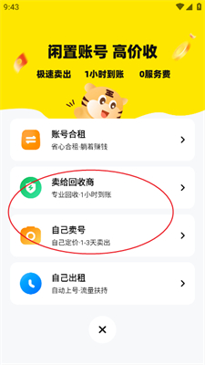 2、有【卖给回收商】和【自己卖号】两个选项。