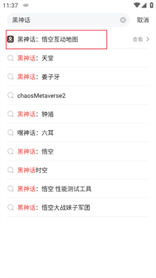 2、输入黑神话就能找到【黑神话悟空互动地图】了,点击打开。