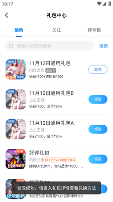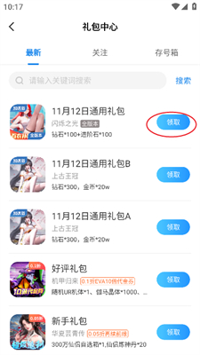 2、看到想要领取的礼包点击右侧的【领取】按钮。
