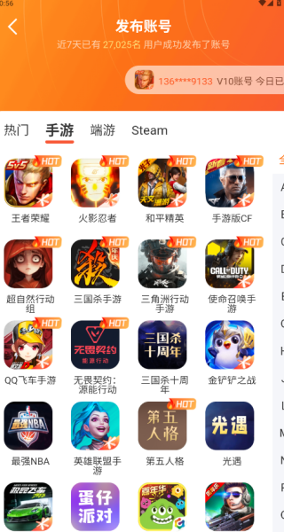 3、能够发布手游、端游和steam账号,选择一个发布;