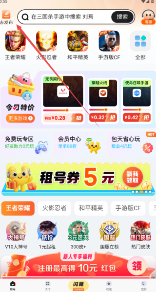 1、进入U号租之后点击搜索框搜索想要交易的游戏。
