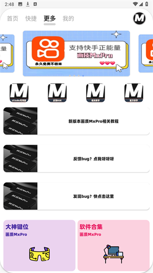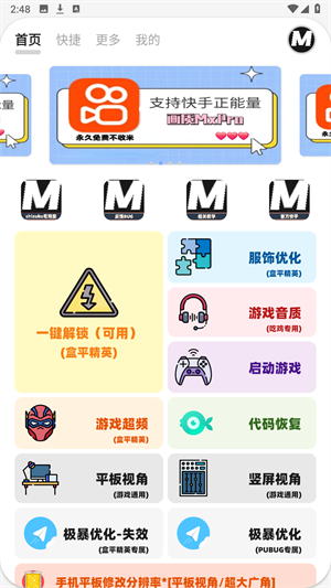 1、打开画质mxrpro安卓版,进入首页,你可以直接选择里面的多种功能。