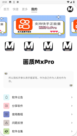 4、进入我的,里面拥有一些使用教程,还可分享软件等等。