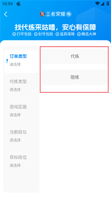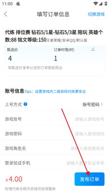 5、选择订单类型并完善好游戏区服、当前段位、目标段位等信息。
