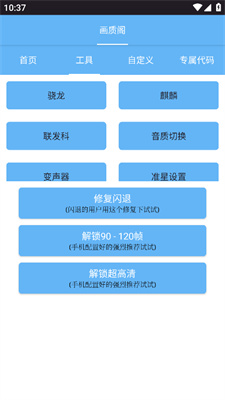 4、工具箱中有修复闪退、解锁超高清、解锁90-120帧。