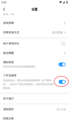 2、最后我们将【个性化推荐】按钮关闭即可。