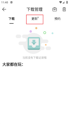 2、进入下载管理切换到【更新】栏目。