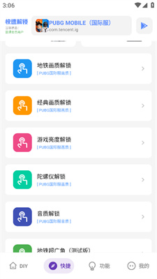 4、进入快捷栏中可以看到地铁画质解锁、经典画质解锁、游戏亮度解锁等。