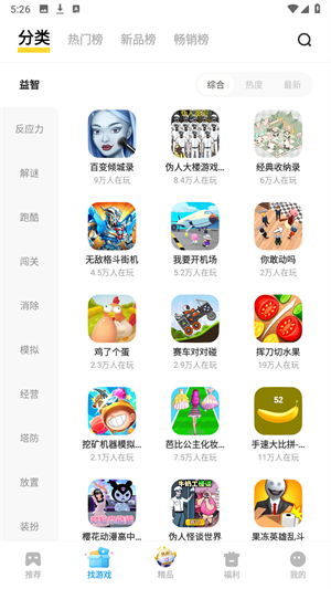2、进入找游戏界面,可以按照类型选择你喜欢的游戏。