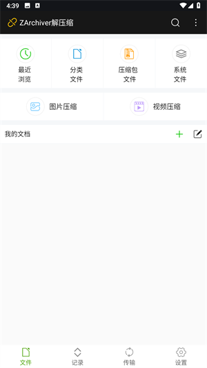 1、打开老外管理器最新版app,点击文件,可以直接看到最近浏览的文件、压缩包文件等等。