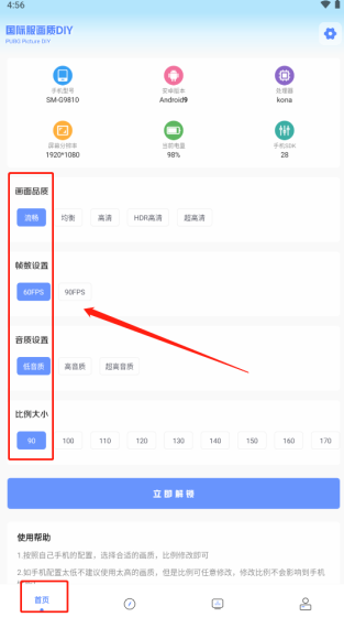 4、帧数、音质以及游戏比例都是可以修改的,解决游戏卡退、延时、闪退等问题。