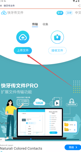 3、再云端传输界面,点击上传文件按钮,开始上传;