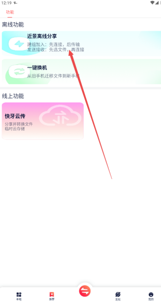 1、下载安装好快牙之后,点击近景离线分享功能,进入分享界面;