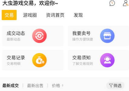 大虫游戏app是一款多功能软件,分享游戏行业最新的账户交易动态。它不仅可以进行角色账户交易,还可以了解游戏行业的新信息。游戏圈中有成千上万种游戏风格。每笔交易都经过官方审查,安全可靠。如果你不能玩,玩家会评论和分享他们的经验,这样可以节省时间和精力。