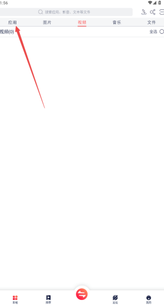 2、进入本地传输板块,能够传输绝大多数文件,点击左上角的应用;