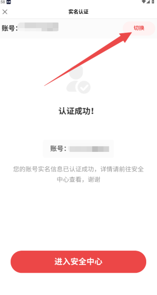 3、在这里能够查看当前绑定手机号,点击后面的切换;