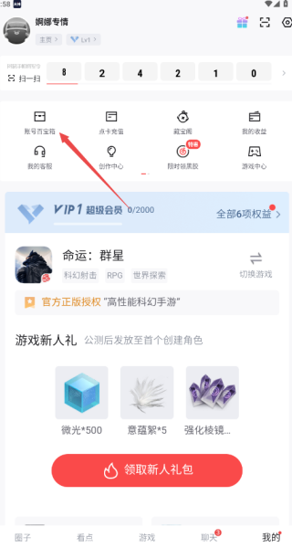 1、点击我的个人信息页,然后点击第一个账号百宝箱;