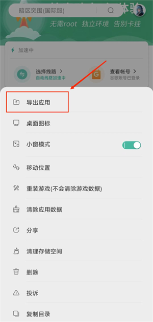 2、当开通VIP后长按要导出的游戏或应用,选择导出即可。