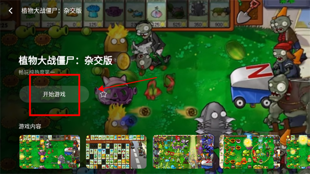 3、返回首页,搜索进入植物大战僵尸杂交版,点击开始游戏
