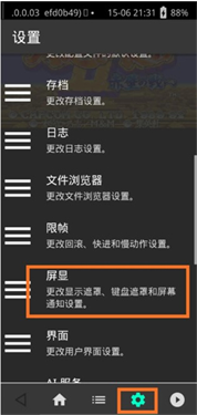 1、运行RetroArch模拟器,并且运行一个游戏,打开菜单,选择齿轮图标,找到屏显,点击