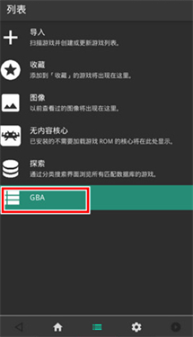 3、在导入页面选择游戏的核心,比如现在要导入的是GBA游戏就选择GBA核心。