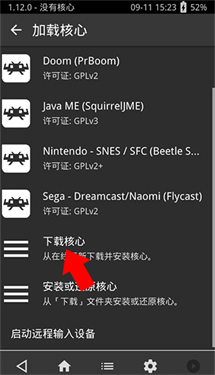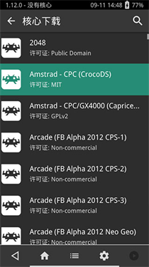 3、来到核心下载界面后,我们根据想要运行的游戏的所需模拟器来安装核心