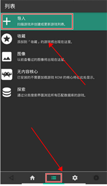 1、打开Retroarch模拟器,在列表页面选择导入。