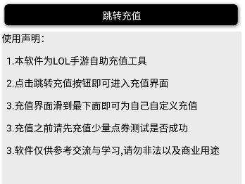 2、本软件为LOL手游自助充值工具。