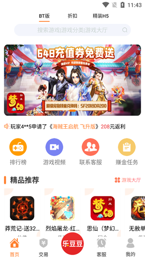 乐豆豆游戏是中国领先的手游福利平台,充值自动打折,折扣低至3折,上线送VIP,免费领元宝,独家福利礼包等,变态手游盒子中福利最好的游戏盒子,绝对玩手游必备神器!