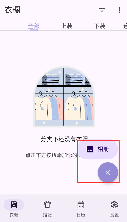 2、衣橱页面支持从相册批量导入服装照片(建议使用纯色背景拍摄),AI自动识别品类和颜色。