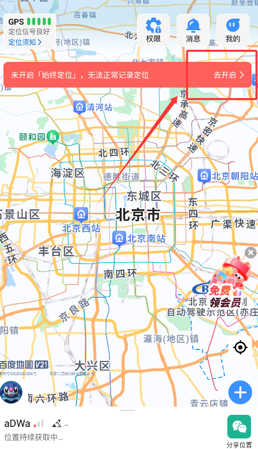 2、进入首页后,点击"开启定位"按钮即可激活位置服务,系统会在地图上实时显示您当前所在位置。
