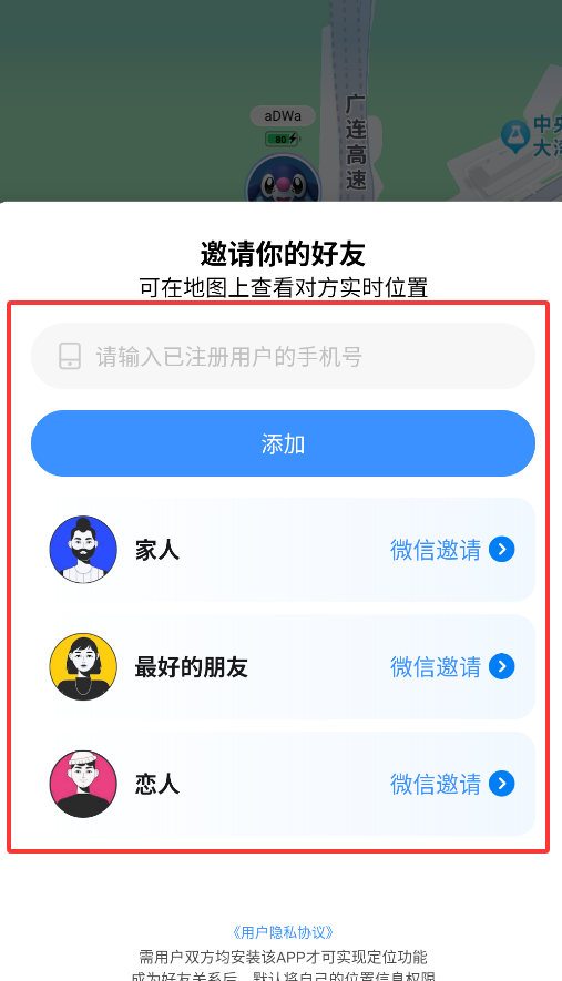 3、通过"邀请好友"功能添加联系人后,双方可以互相查看实时位置信息,方便随时掌握对方动态。