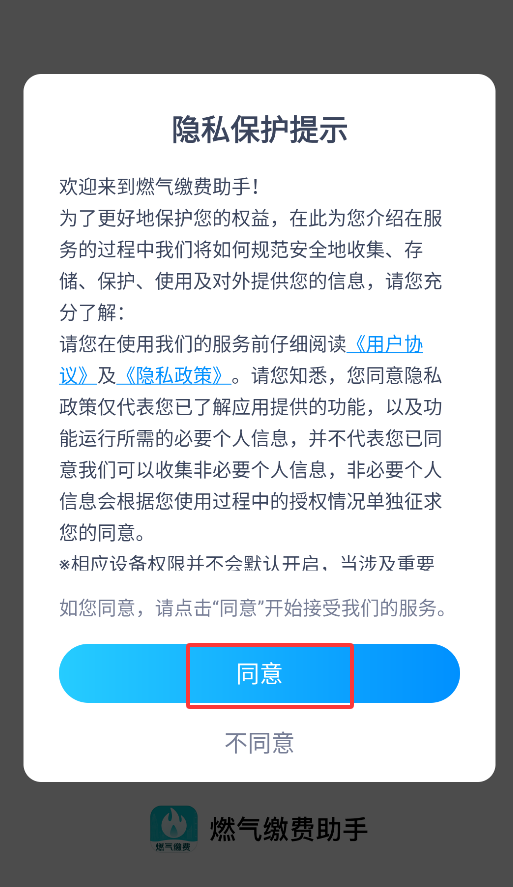 1、首次启动APP需阅读隐私保护条款,点击"同意"按钮后即可进入主界面。