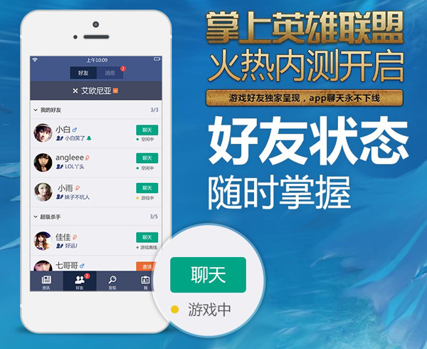 *独家呈现游戏好友列表,随时随地让你掌握好友状态,订阅好友上线通知,APP直接与好友聊天。