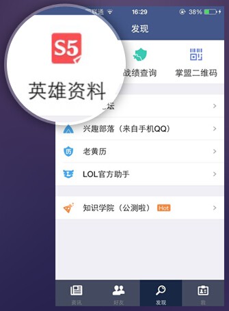 ② 进入【发现】→英雄资料