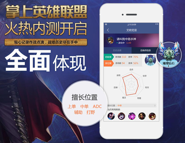 亮点介绍:玩家等级、局数、胜率、擅长位置、当月常用英雄等游戏信息统统记录在案,妈妈再也不用担心我自己坑自己啦。