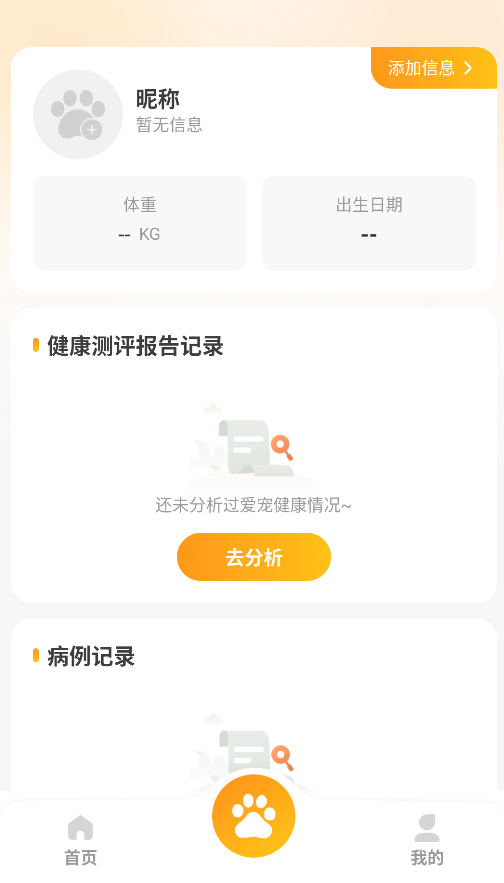 1、首次使用需完成宠物基础信息注册,包括品种年龄、既往病史等,系统将据此定制专属功能界面。