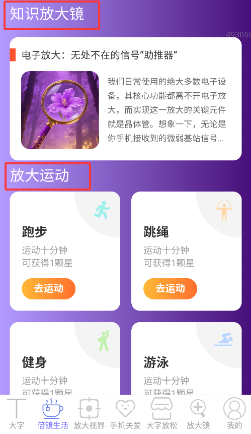 1、快速启动:下载安装后,首页一键开启放大镜功能,滑动调节栏即可适应不同观察场景。