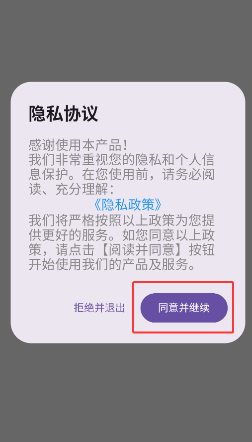 1、首次启动车险价格快查APP时,系统会弹出用户协议确认窗口,点击"同意"按钮后方可进入应用主界面。