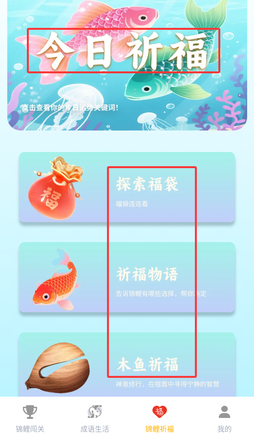 锦鲤成语这个成语APP挺有意思的,主要是玩成语闯关游戏。题库很全,从简单到难的成语都有,玩着玩着就能学到不少。还能抽祈福卡片,图个吉利。喜欢成语或者想给孩子找学习软件的可以试试,比死记硬背有趣多了。
