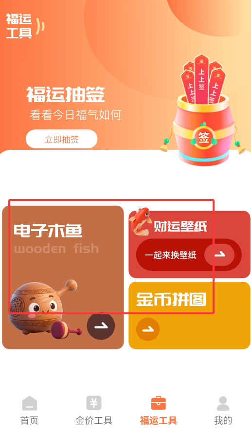 4、趣味板块包含电子木鱼祈福、财富拼图游戏及招财壁纸等寓教于乐的财运提升功能。
