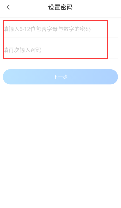 4、在密码设置界面,需创建6-12位包含字母和数字的组合密码,确保账户安全性。