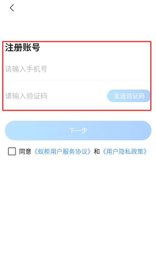3、注册第一步需要输入有效手机号码并获取短信验证码,验证通过后点击"下一步"继续。