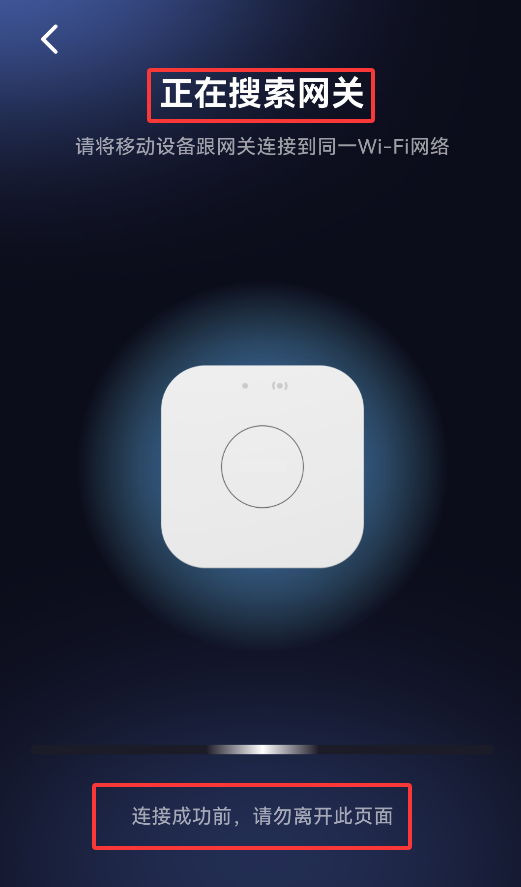 3、系统将自动扫描局域网设备,此时手机与网关必须处于相同无线网络环境下才能成功识别。