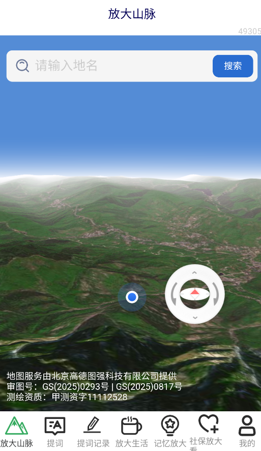 2、"放大山脉"功能支持输入地点名称,可查看高清卫星地图和3D地形模型。