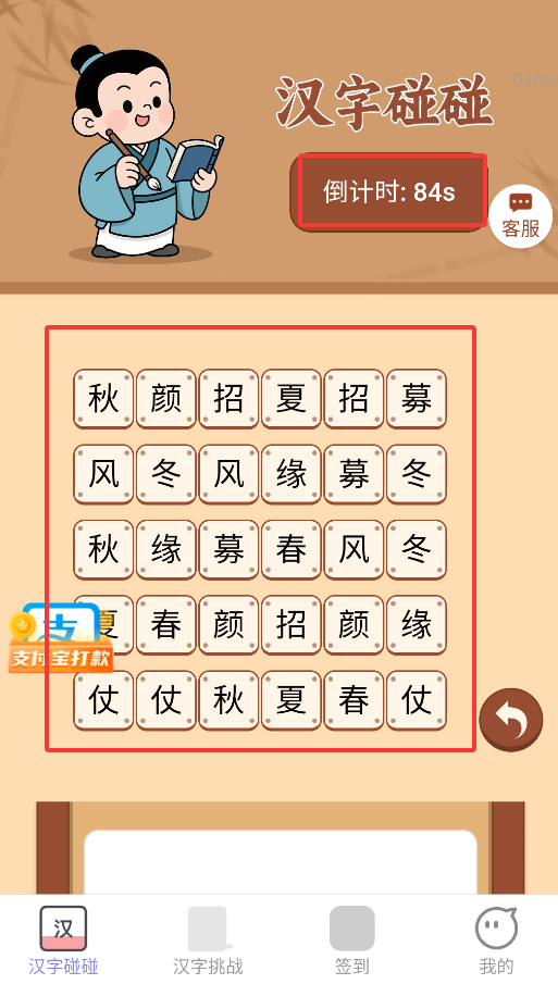 2、汉字碰碰乐游戏需要在限定时间内完成指定任务,成功后可获得相应金币奖励。