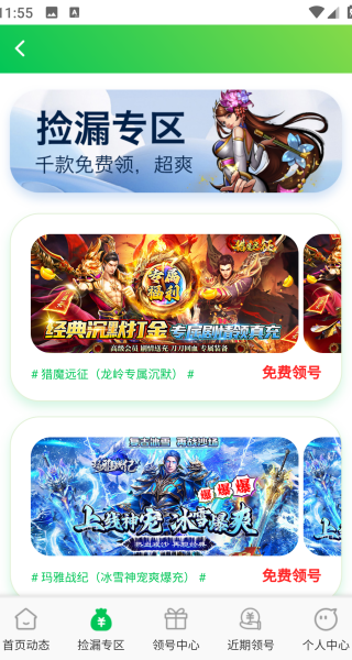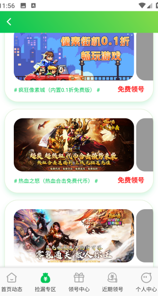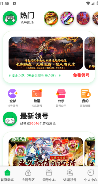 3、点击领号专区,能够领取内部号和福利号,充值比例更高,权益更好;