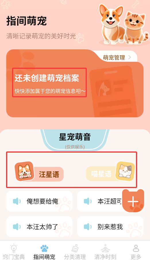 2、通过"指尖萌宠"功能可创建个性化宠物档案,有互动养宠乐趣功能。