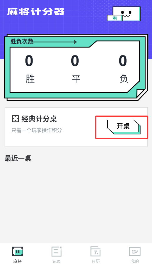 2、在首页点击"新建牌局"按钮,即可开始记录当前牌局的得分情况,支持多人同时计分。